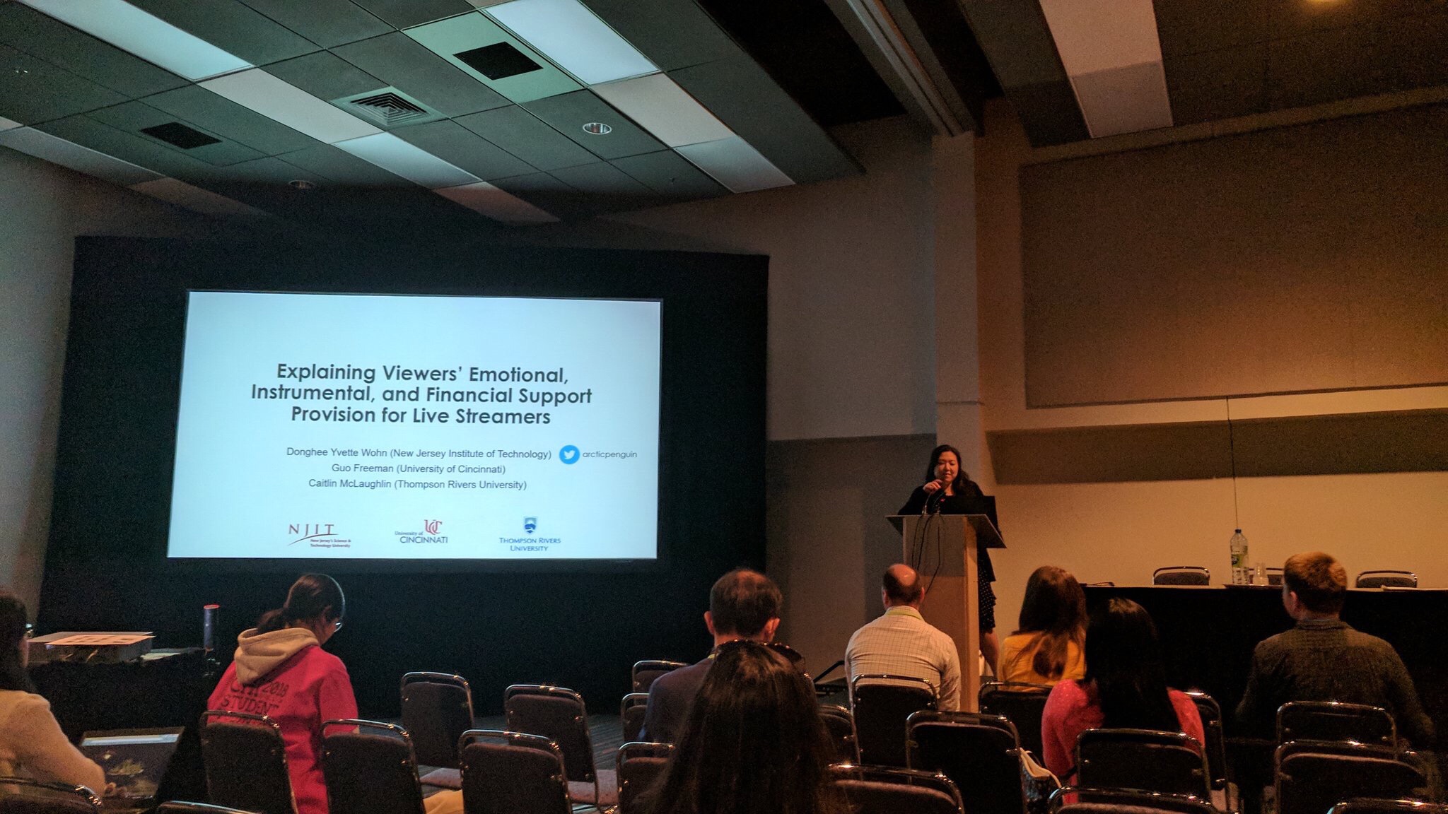 Dr. Wohn presented a paper on why viewers give emotional and financial support to live streamers at the ACM Conference on Human Factors in Computing Systems (CHI). This took place April 21-26 in Montreal.