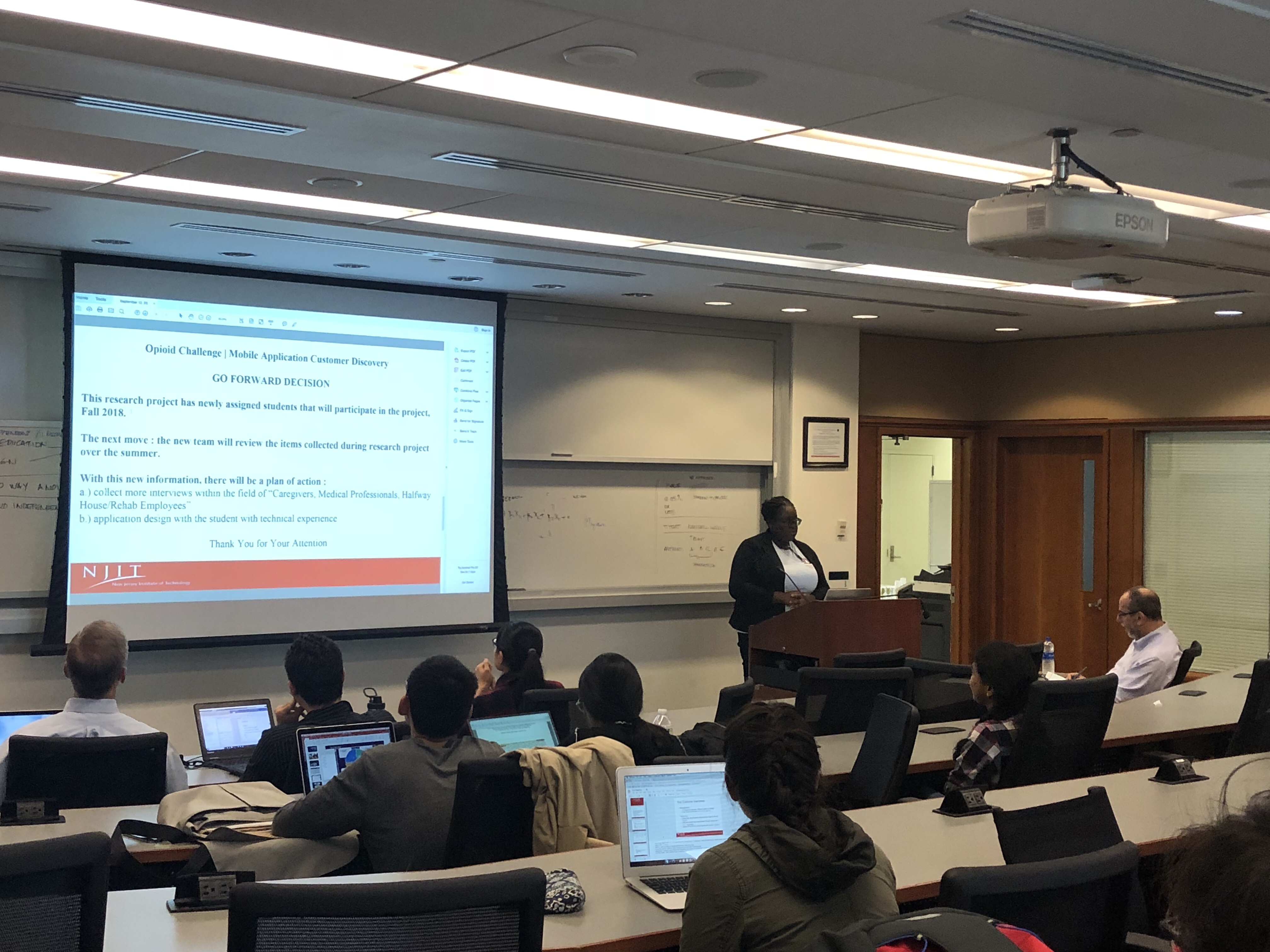 Kim shared research on the opioid recovery support app that was conducted over the summer at the final session of the NJIT NSF icorps program. This fall we will be working on designing the application and doing further research.